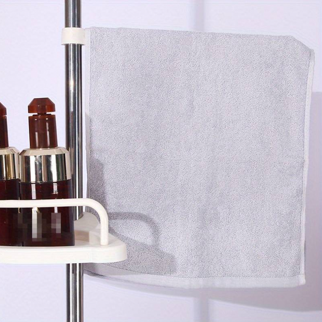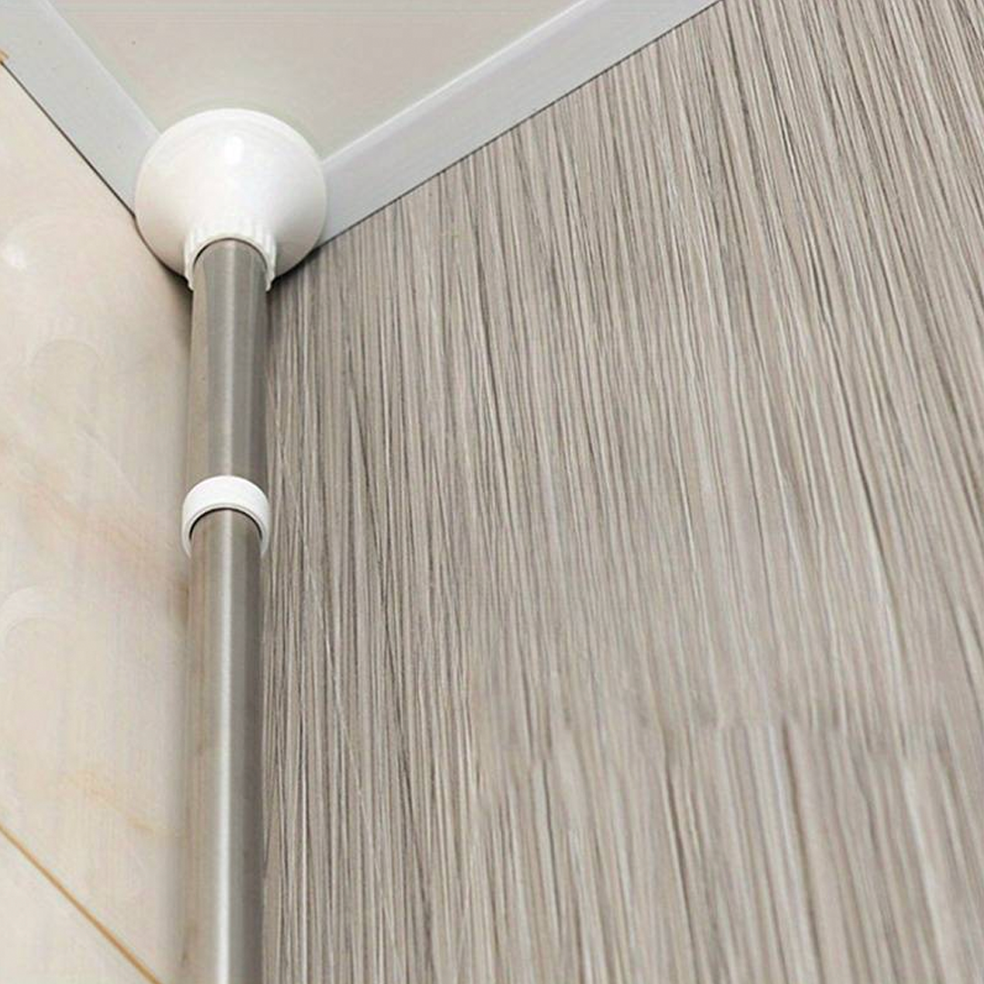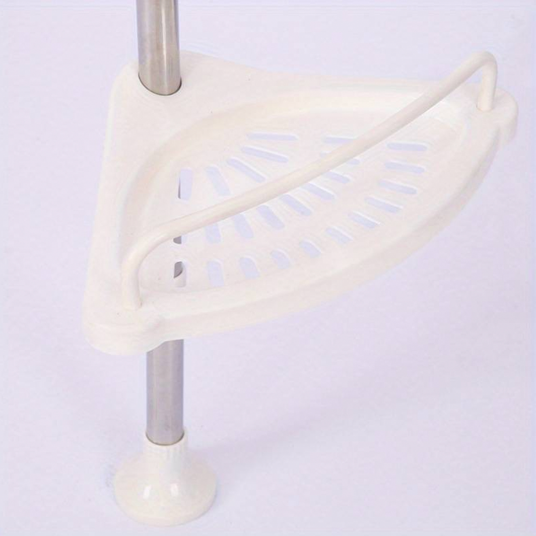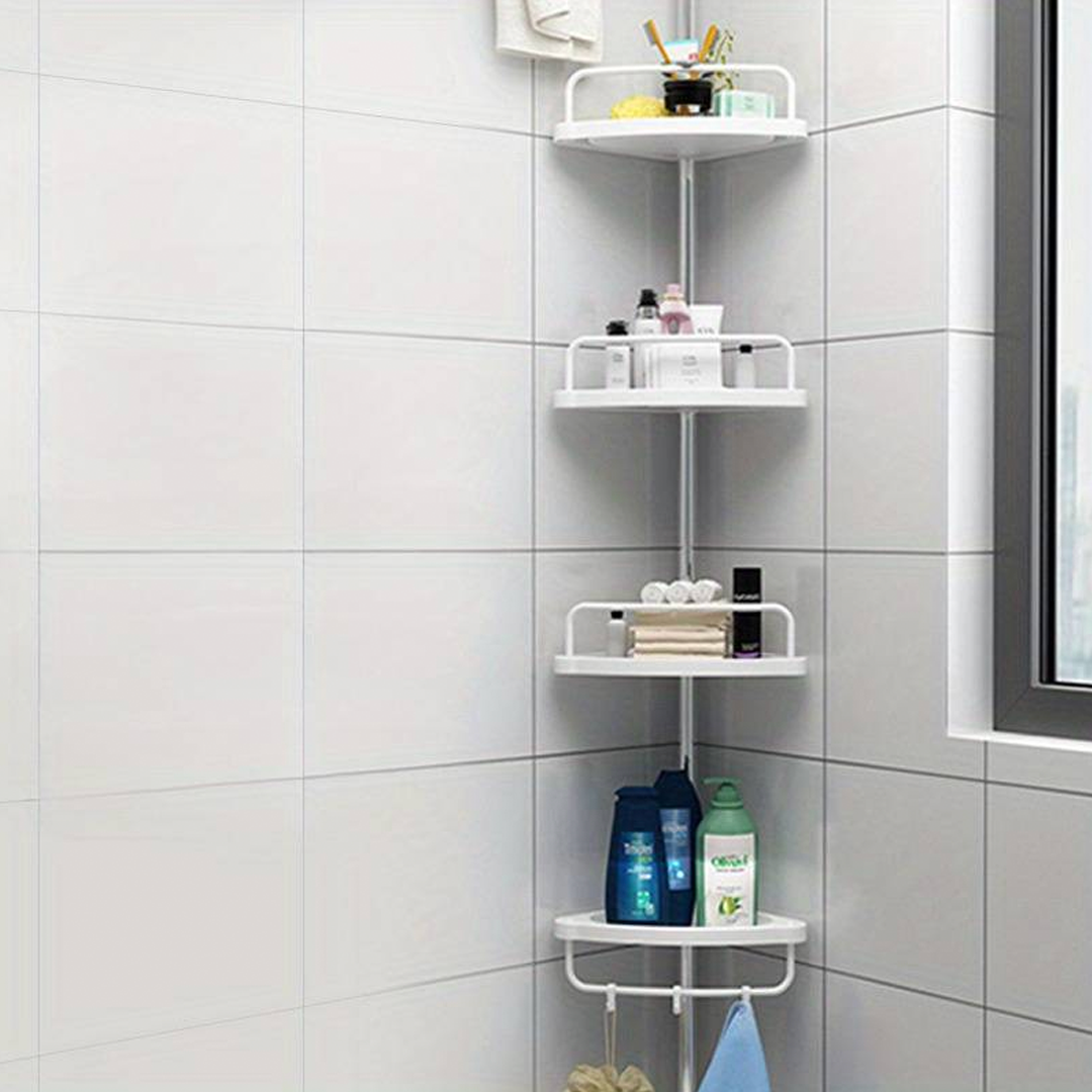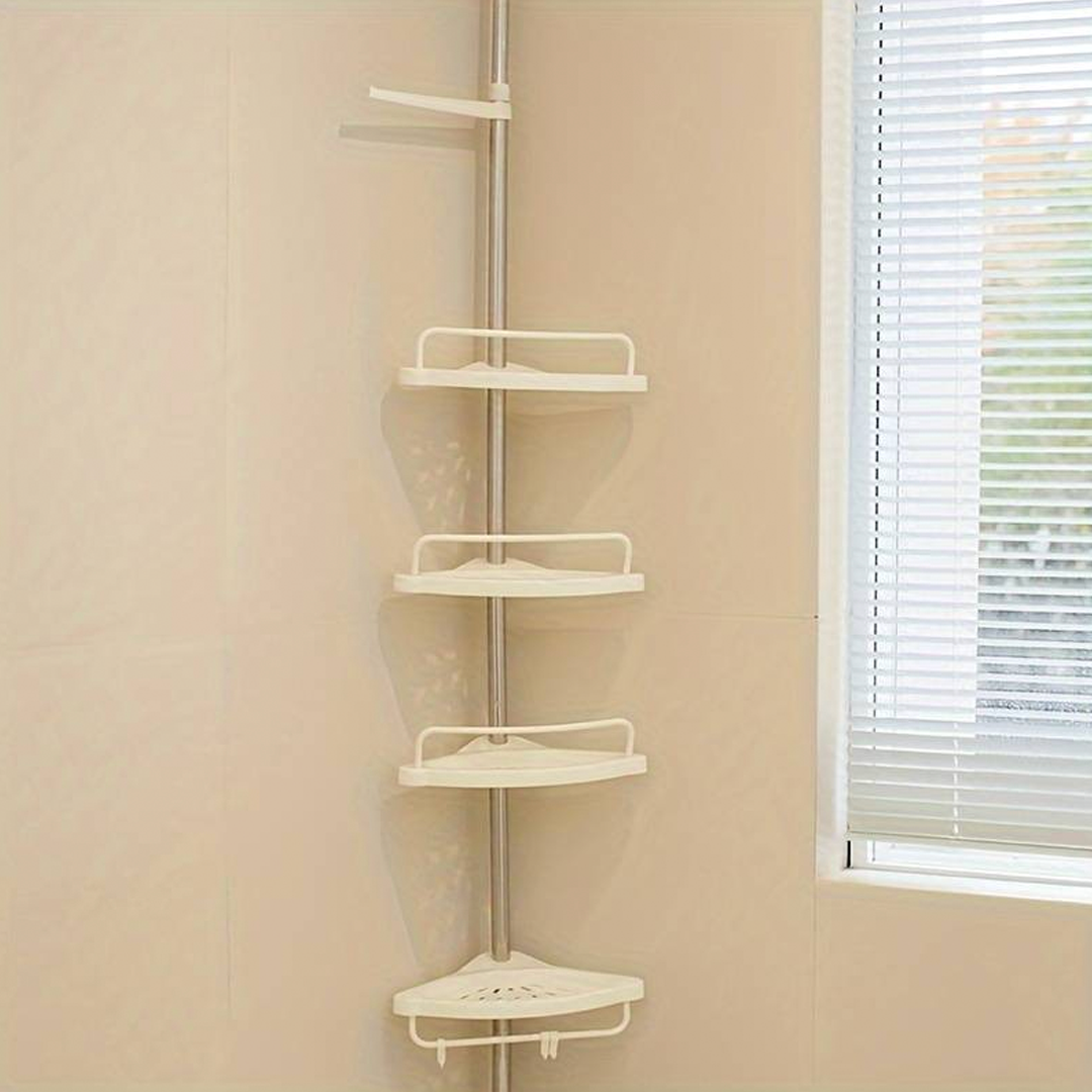 🔧 Teleskopický, pružinový, otočný a uzamykateľný mechanizmus sa v priebehu niekoľkých sekúnd úhľadne zmestí do rohu sprchy (od podlahy po strop) alebo vane (od okraja vane po strop).
