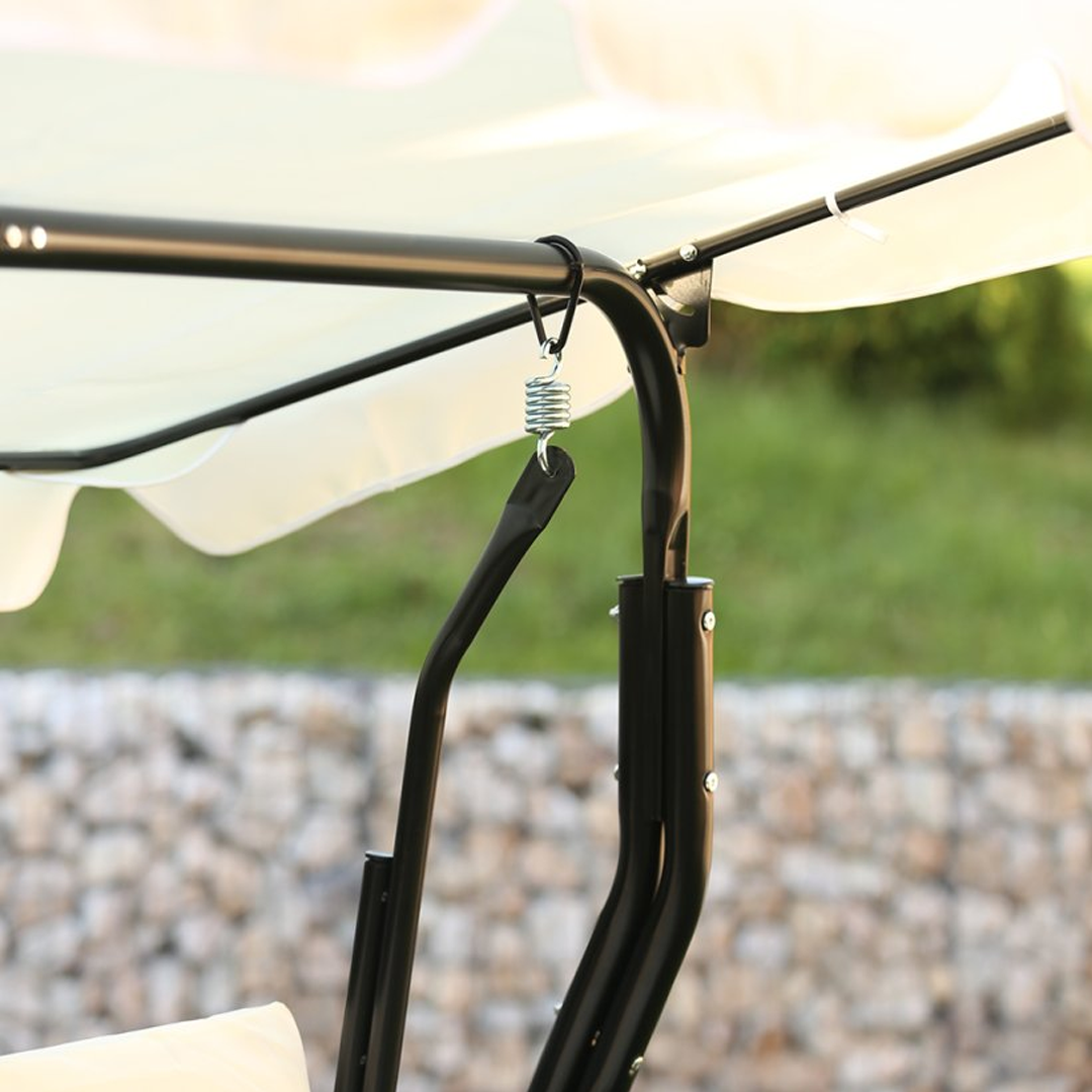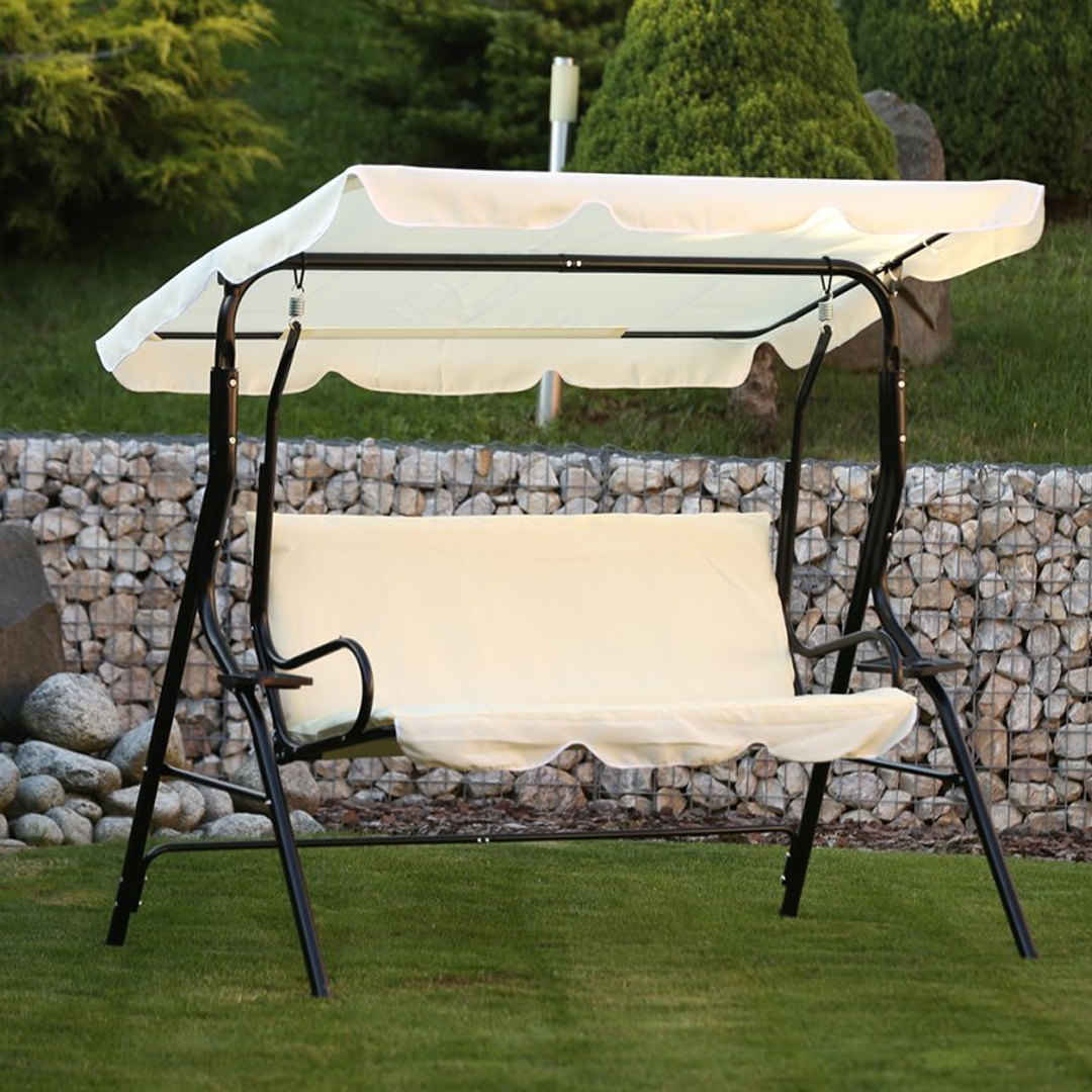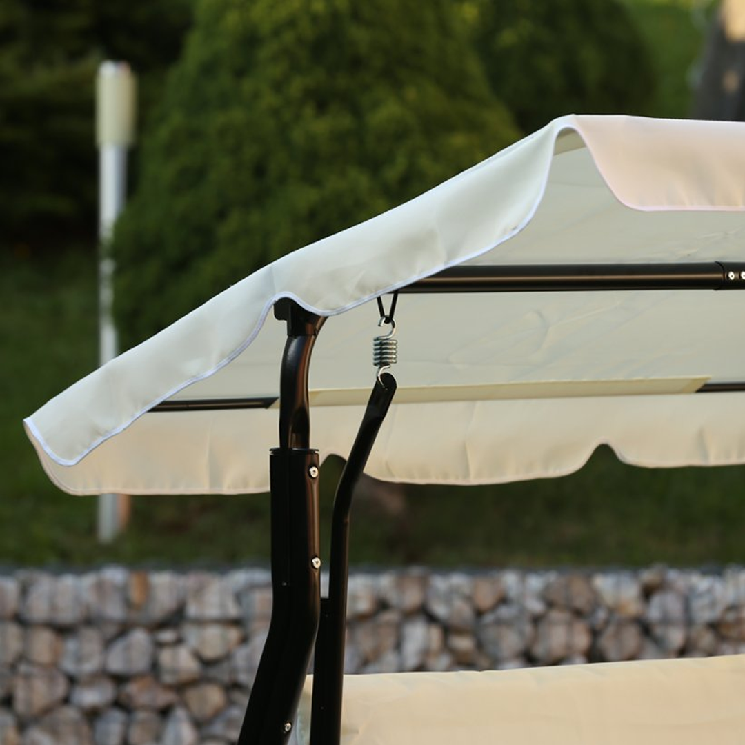 Táto hojdačka je ideálna na relax na dvore alebo terase. Vďaka nastaviteľnej strieške, ktorá poskytuje dodatočnú ochranu pred slnkom, si ju môžete užívať za každého počasia. Odnímateľné vankúše ešte viac zvyšujú pohodlie a sada obsahuje všetky potrebné spojky, skrutky a pružiny pre jednoduchú montáž.